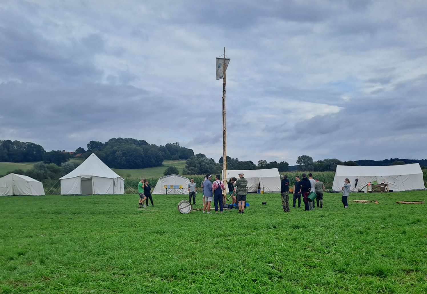 Auch dieses Jahr können wir es kaum erwarten wieder in eine Woche Zeltlager zu starten. Nach der ganzen Planung geht es jetzt endlich los. Innerhalb von drei Tagen entsteht auf einem Feld bei Egg an der Günz eine Welt der Elementmagier- und Magierinnen. Feuer, Wasser, Luft und Erde werden durch ihr Element vertreten. Die Feuerstelle wurde ausgehoben, eine Wasserstelle mit Floß gebaut und alle Zelte errichtet, was wegen den Windböhen zur Herausforderung wurde. Doch unser Lager ist in gefahr und nur die neuen, jungen Elementbendiger*innen könne es retten.