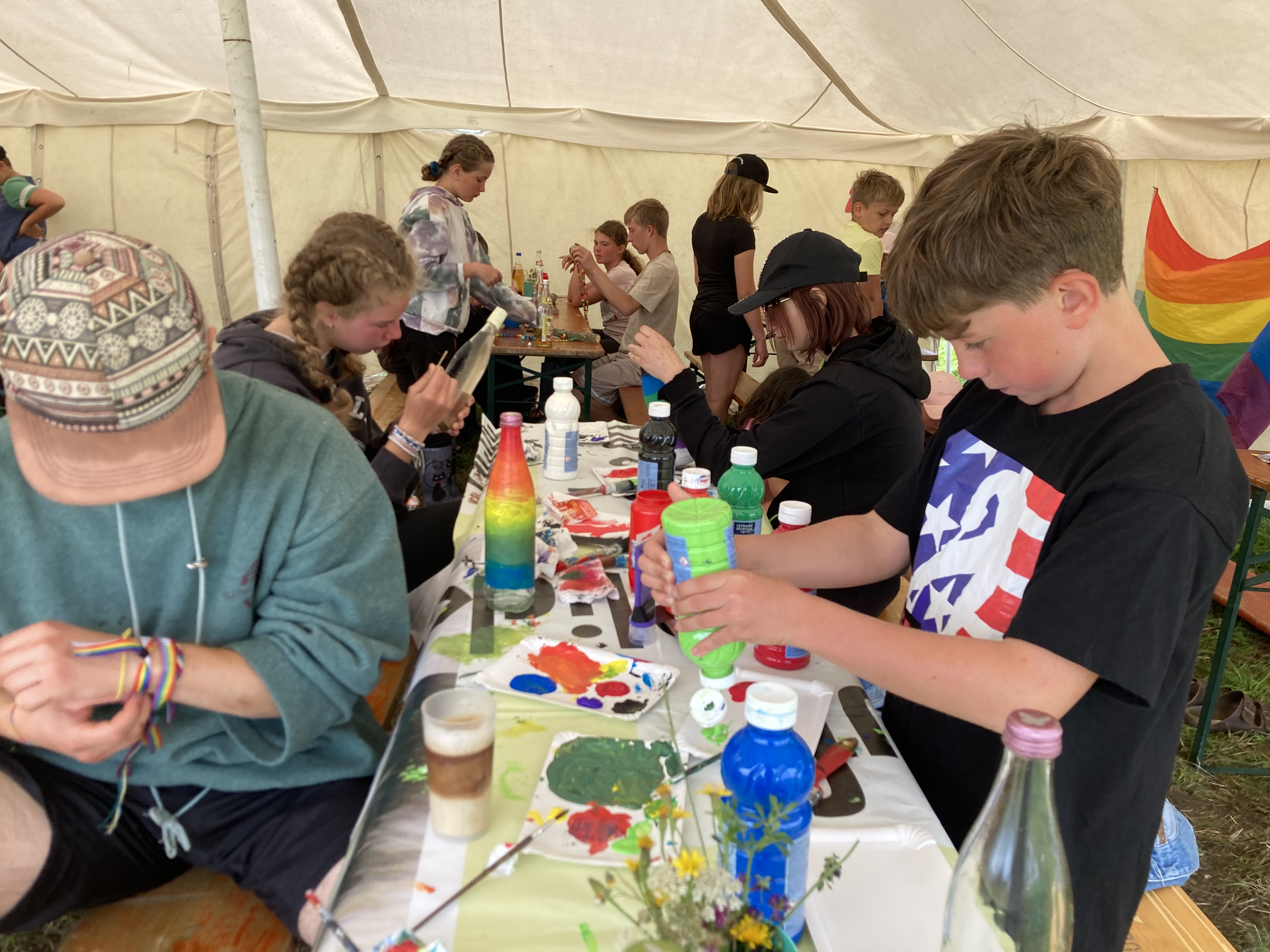 Heute früh wurden wir das erste Mal von der Sonne geweckt! Wir starteten den Tag mit verschiedenen Workshops. Von Postkarten schreiben, Henna-Tattoos malen, Flaschen bemalen und bepflanzen bis hin zu Kerzen ziehen und Flugdrachen bauen konnten die Kinder sich kreativ ausleben.