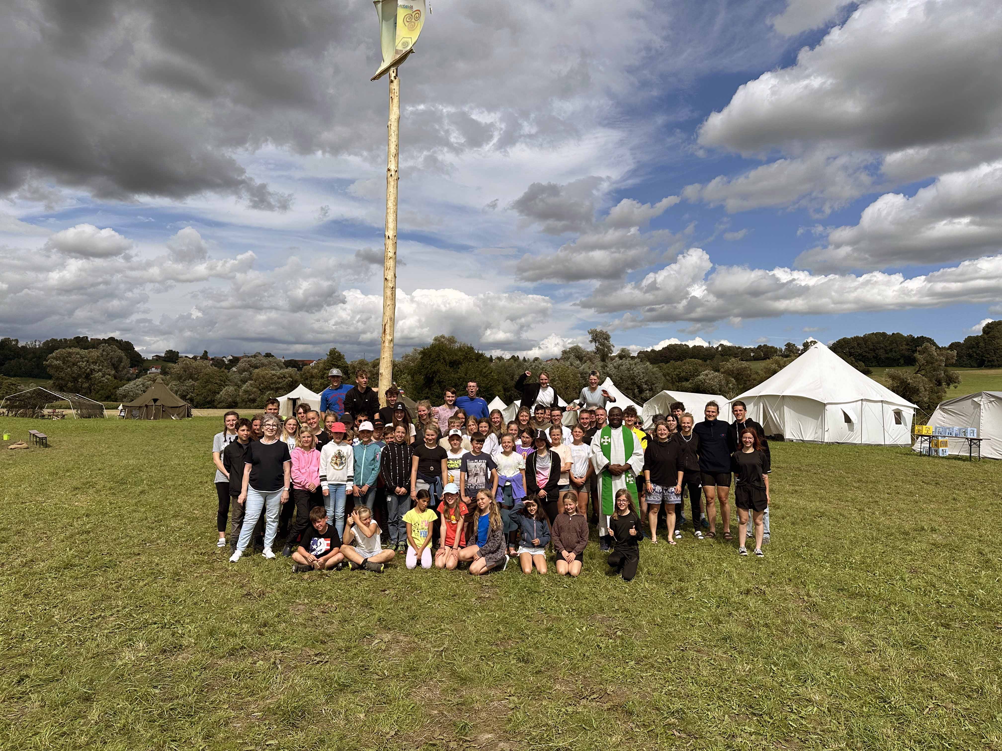 Nach dem handwerklichen Vormittag bekamen wir nach dem leckeren Mittagessen Besuch von unserer zweiten Oberbürgermeisterin Margareta Böckh, die sich unser Lager anschaute und anschließend gemeinsam mit uns und Pater Emanuel unseren Lager-Gottesdienst feierte. Danach haben wir das gute Wetter genossen und Fußball gespielt, am Klavier musiziert und waren in unserem Bach baden.